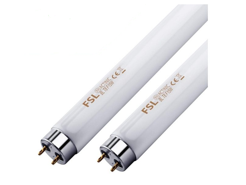 Трубчасті флуоресцентні лампи низького тиску до приладів для знищення комах, що літають. Стіни ламп зсередини покриті білим люмінофором, який перетворює короткохвильове ультрафіолетове випромінювання ртутного розряду в довгохвильове, UV-А діапазон з довжиною хвилі 350 нанометрів (nm).