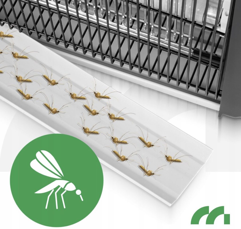 Як приманку виступають дві потужні 20 w-УФ лампи, світ яких летять комахи. Комарі, мухи, ґедзі, оси гинуть, зіткнувшись із сіткою-розрядником, і потрапляють у спеціальний лоток, який потрібно періодично очищати. Площа дії приладу складає 160 кв. м. Для кращого ефекту радимо розміщувати пастку на висоті близько 2-х метрів від інших джерел світла.